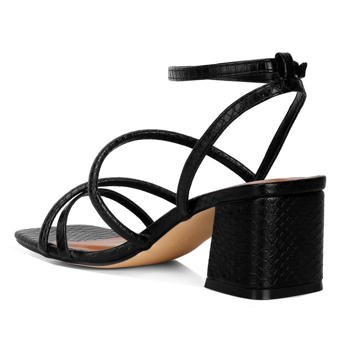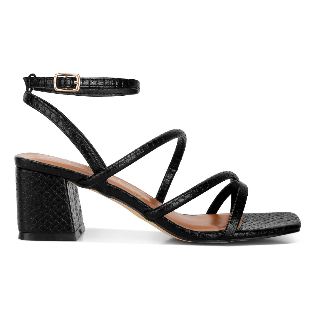 The croc patterned three-strap sandals are minimal and chic, ideal for work wear. The block heels and soft insole offer comfort. The sandals are versatile and stylish with an ankle strap and come with pin-buckle fastening.