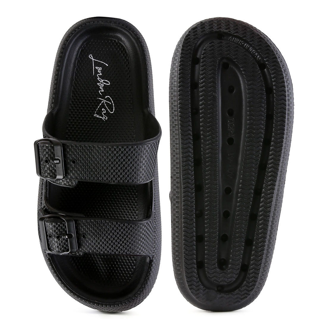 Molded insole and soft rubber platform slides; what catches attention is the cute hovercraft design. The funky casual slides are summer stunners from London Rag.