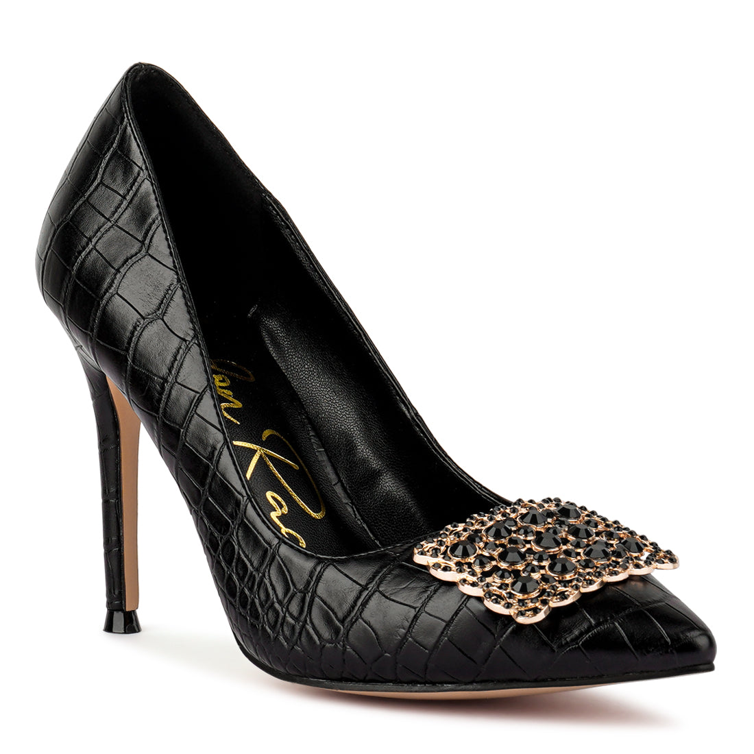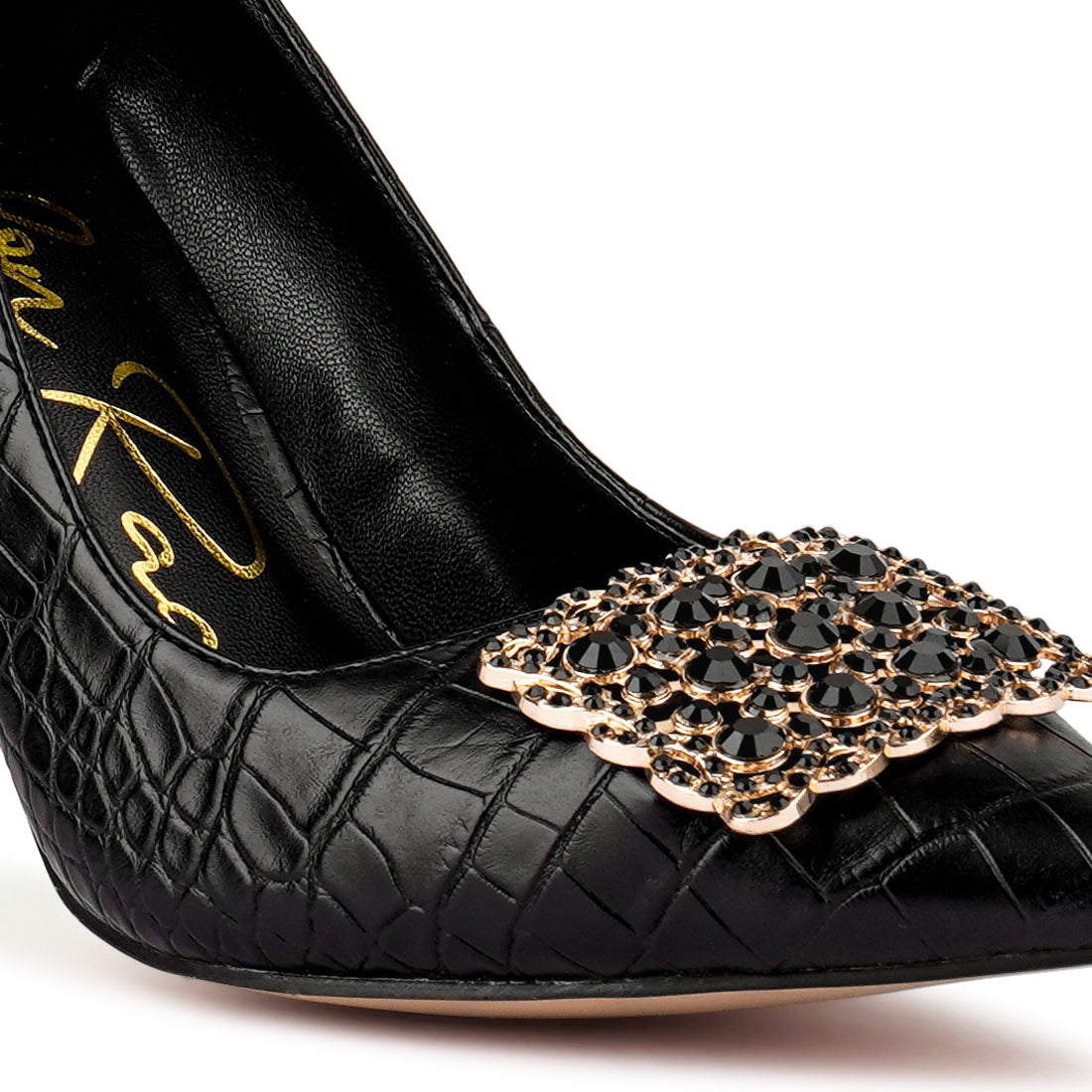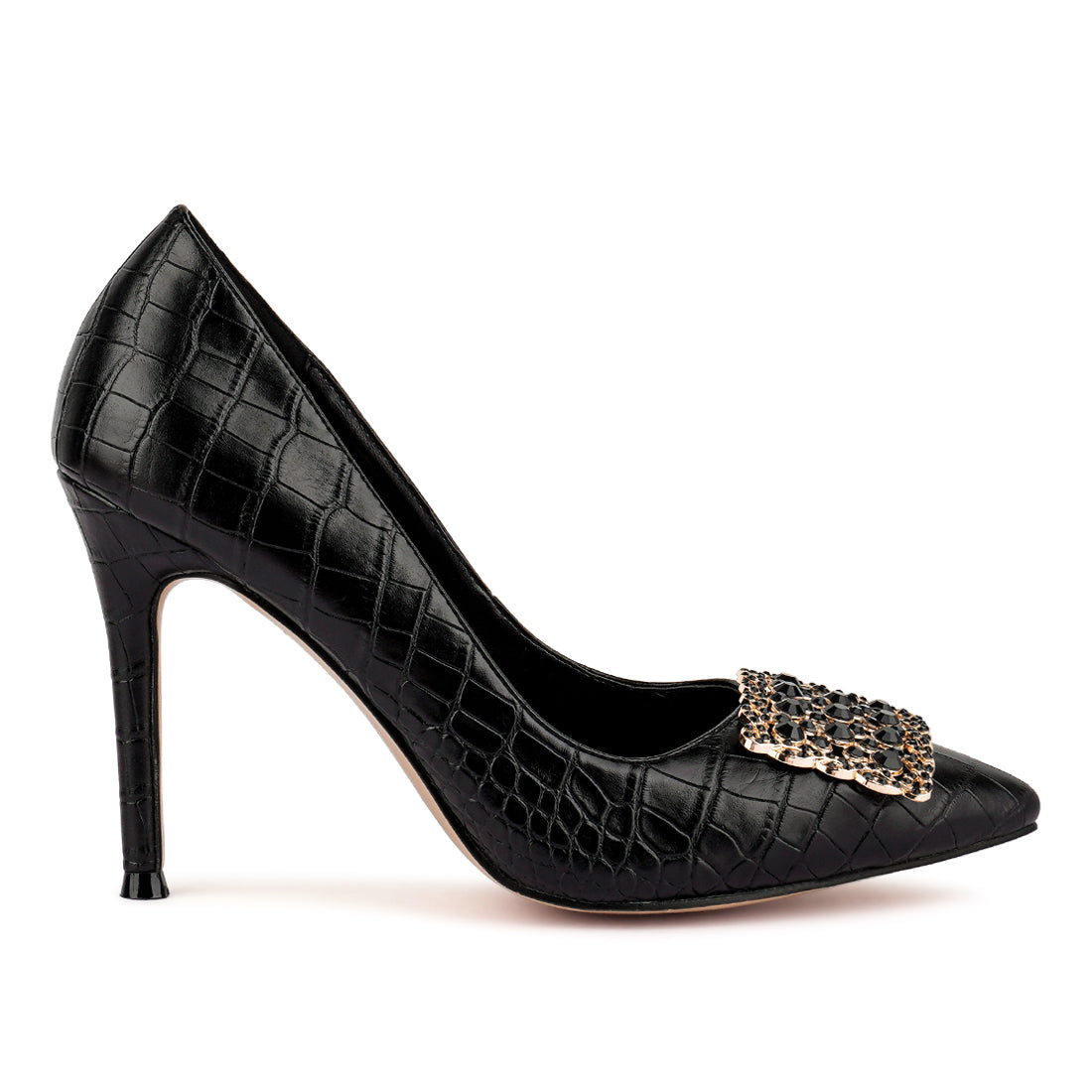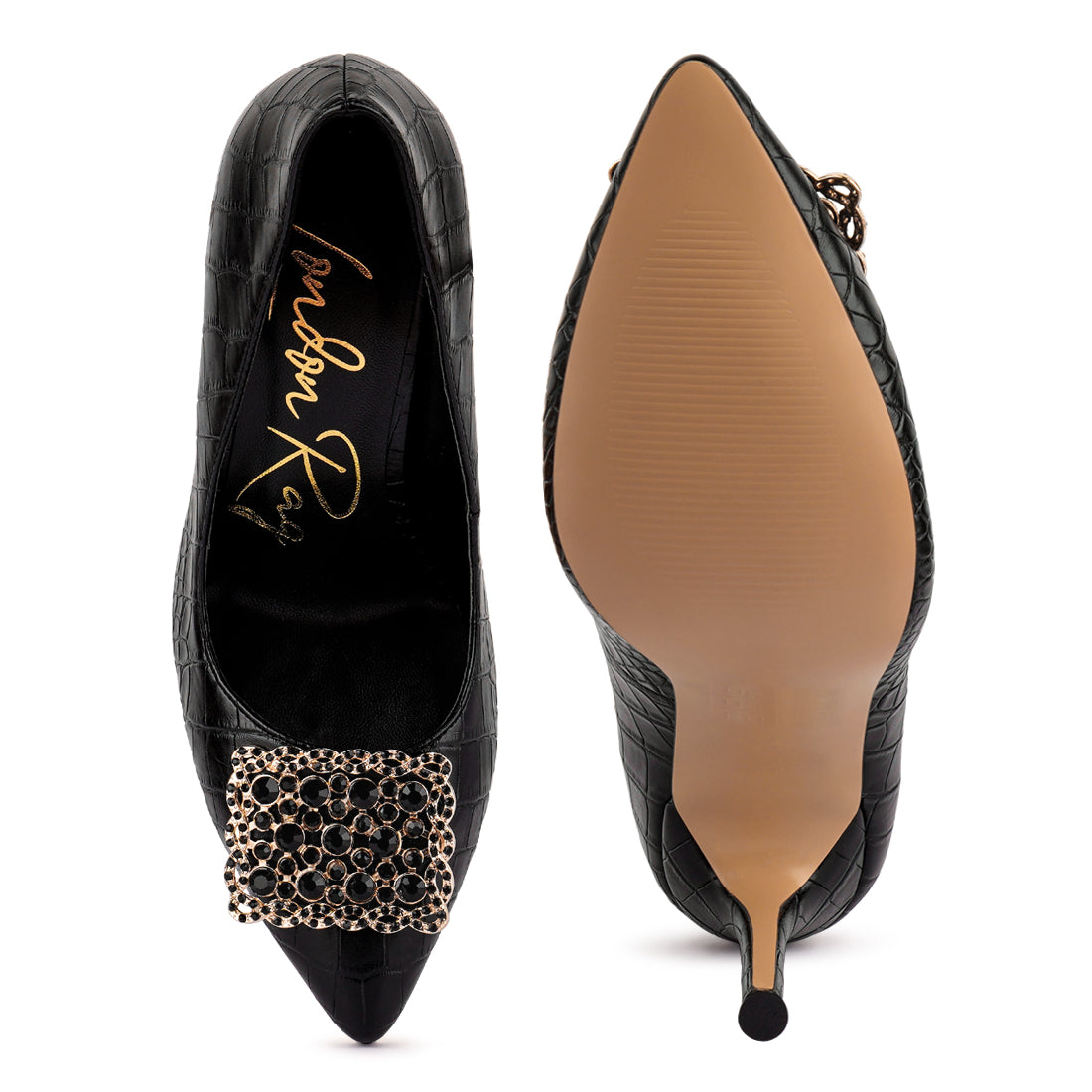 Beautiful pair of Pumps with crystal lined square brooch on top. What else do we need this evening?
