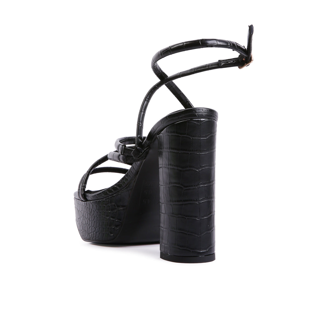 The strappy heels are trendy, sexy and bold. The cushion insole cuts stress. An ideal choice or a night-out, paired with a mini-skirt and blouse.