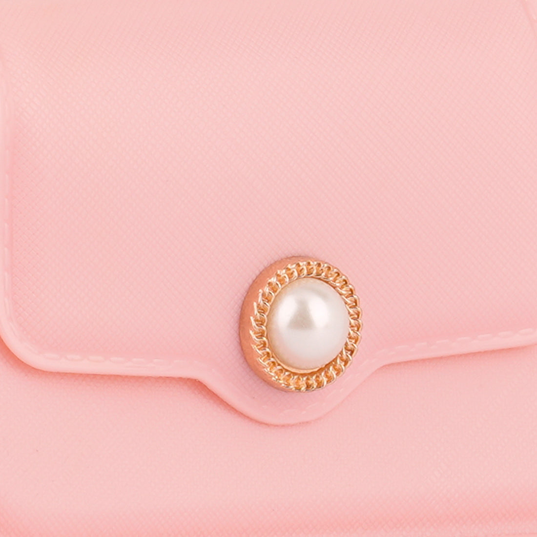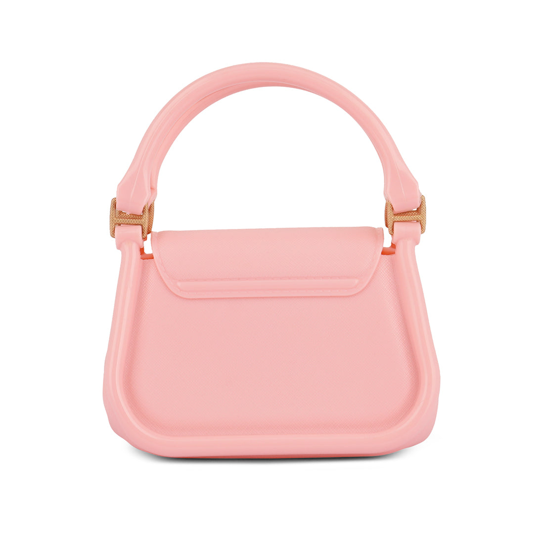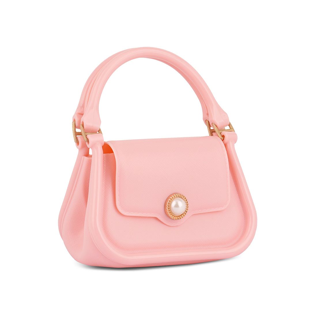 Soft Jelly Baguette PU with Magnetic Snap Closure. The handheld bag has a wristlet handle and detachable metal chain strap. It has a single large compartment which has room for all your essentials.