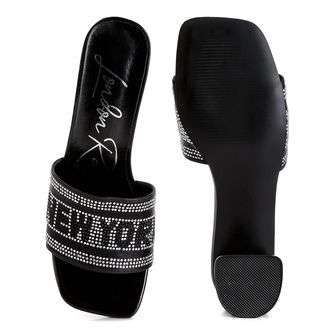 Curated with luxurious shimmer fabric, these square-toed Heels are beauty and glam combined! With comfortable low-block heels, you know you're ready for some party and quick brunches with your girl pals. Pair these 'New York' rhinestone-embellished Heels with shorts, skirts, or midi dresses.