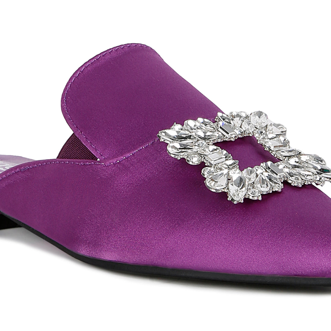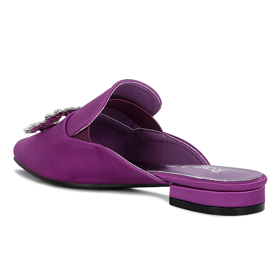 The slip on mules are constructed with beautiful satin and the diamond buckle on the front takes it a notch up. The soft cushion innersole cuts strain. The mules are a must-have if you want luxury and comfort all in one.