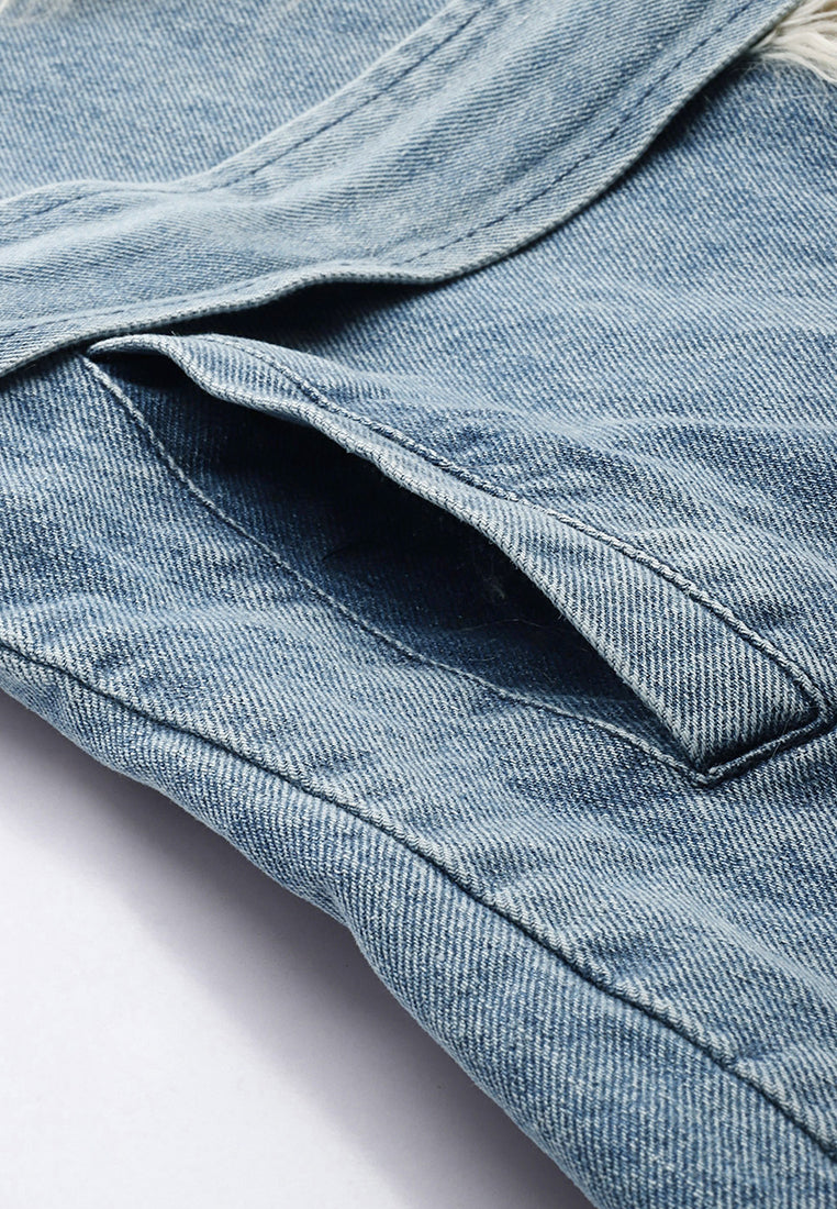 The denim trench coat is uber chic and eccentric with faux fur trim and light wash denim visual texture. The coat has a sophisticated yet maximalist aesthetic and would pair beautifully with some of London Rag's stylish fits to layer underneath!