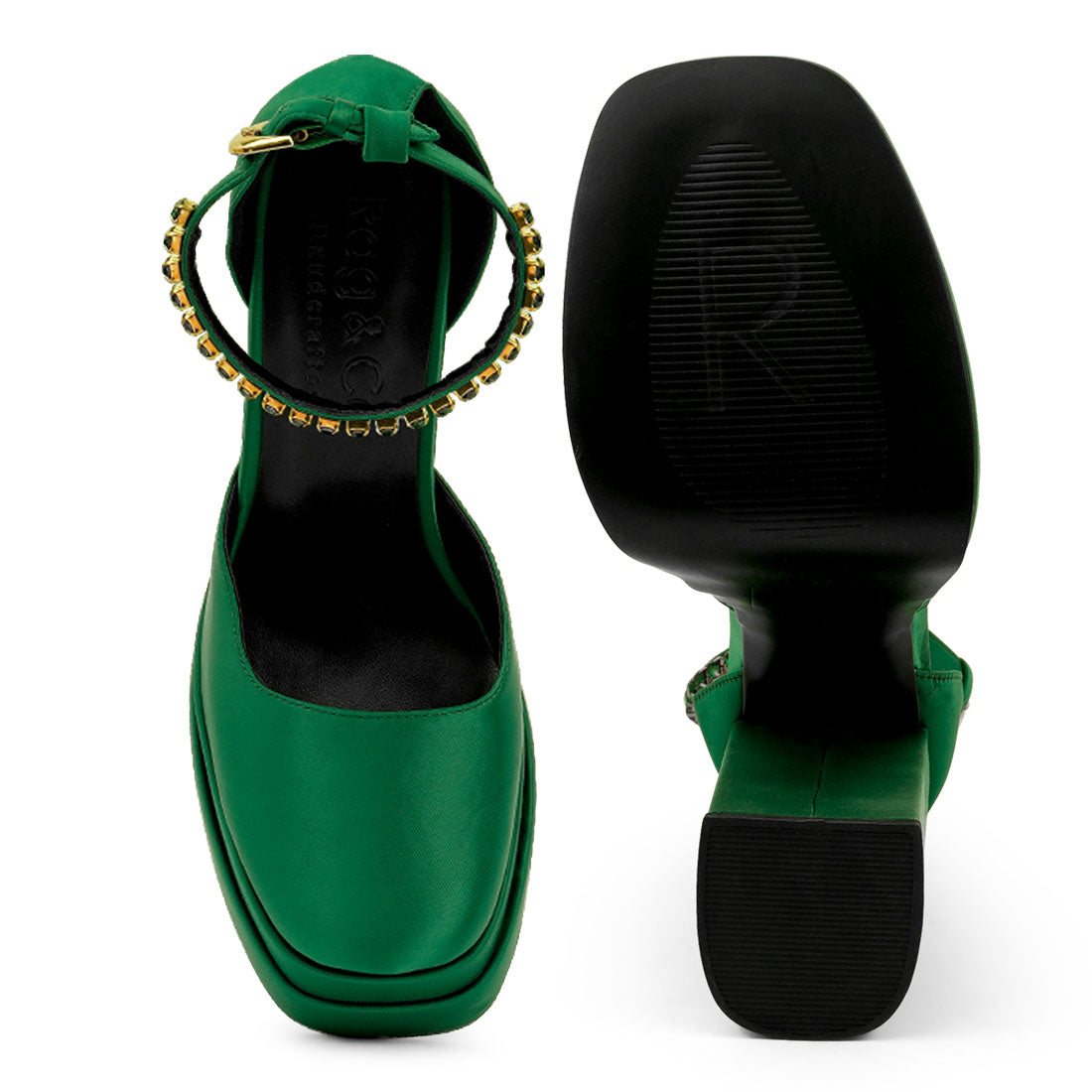 Channel your inner supermodel as your feet find these super-premium satin sandals built on raised platforms which give it additional height apart from the block heels. The soft cushion innersole has soft padding and cuts stress. It has an ankle strap with pin buckle closure which secures your feet well and decorates your ankle with the diamante rhinestone details.