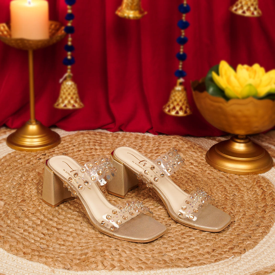 Women Metallic Clear Strap Block Heels