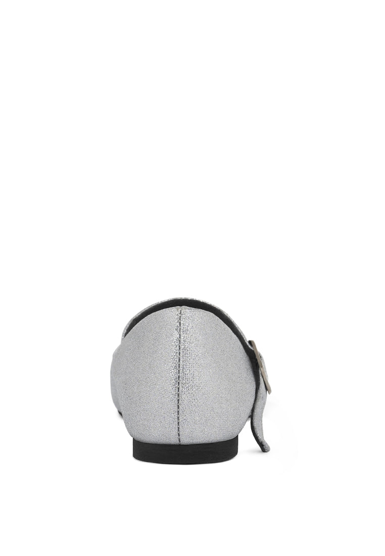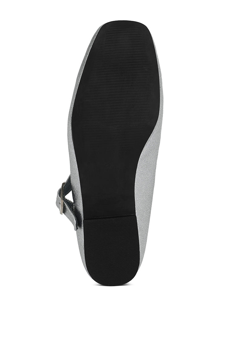 Glitter faux leather sandals with a closed square toe and a sleek pin-buckle strap? Fire. Set on flat heels with a resin sole and cushioned lining, they’re designed for easy wear and everyday sparkle.