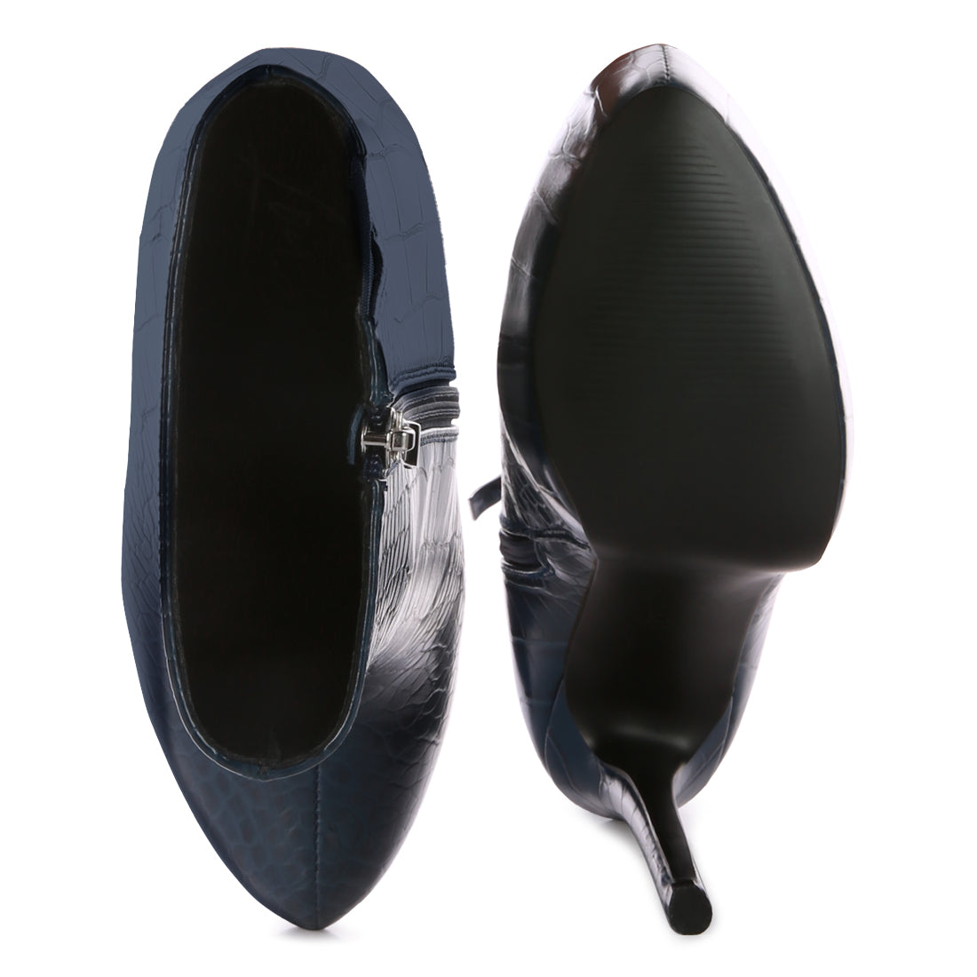 Navy Blue High Heeled Croc Pattern Ankle Boot
