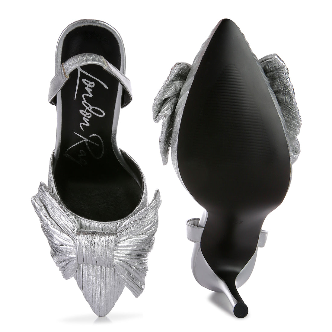 The bow detail high heeed sandals are simply stunning. The soft padded innersole offers comfort and the elasticated slingback helps secure your feet. The sandals are subtly sexy, chic and a must have!