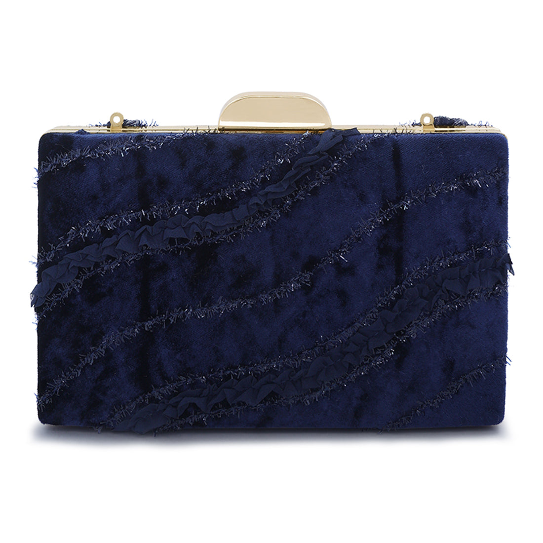 Velvet and ribbons: all things make this delicate clutch bag pretty print on the bag is a pretty sight that instantly brightens up the look of the bag. The detachable strap makes the bag functional and versatile. The bag is perfect for a fancy outing or to add some texture to an outfit.